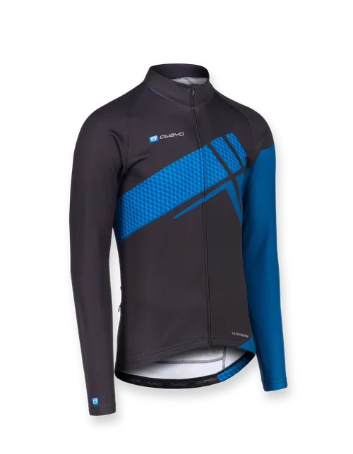 Maillot cycliste manches longues confortable en tissu mi-saison, idéal pour les journées froides.